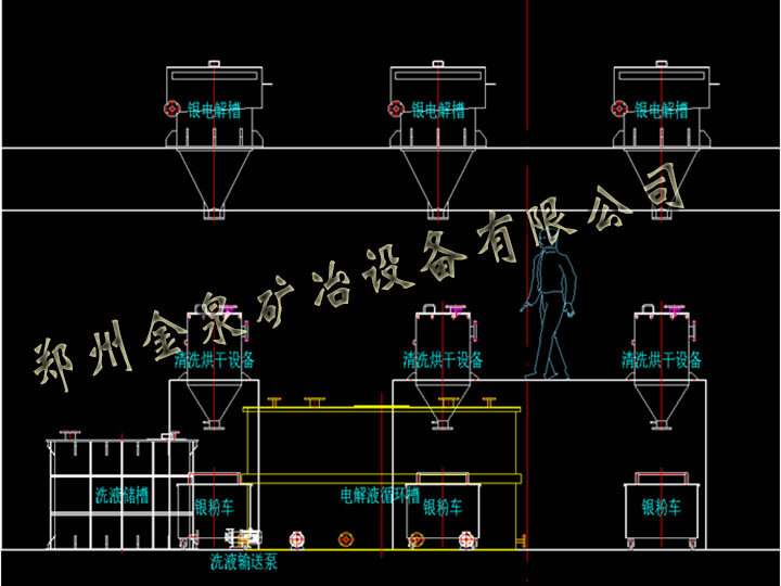 二、電解精煉:處理銅、鉛陽極泥獲得的Ag-Au(含Ag>99%)、氯化金泥溶煉獲得的含Ag70-75%的合質金、含銀二次資源提取出的粗銀等,可用電解法精煉。先需將粗銀熔煉燒鑄成銀陽極板。含銅、硒、碲等雜質較多的精銀,在熔化后先加入碳酸鈉熔劑并鼓空氣在熔體表面氧化吹煉,使銅、碲等雜質元素造渣,分離爐渣后將粗銀澆鑄為陽極板。一般銀陽極含Ag>75%,Au<20%及少量的銅、鉍等。在循環流動的硝酸銀溶液中電解,電解液含Ag60-150g/L。為防止鉍及其他賤金屬水解污染銀粉,電解液應含游離HNO3 10 -18g/L,但硝酸濃度不能高,否則陰極析出的銀粉會被硝酸重溶。